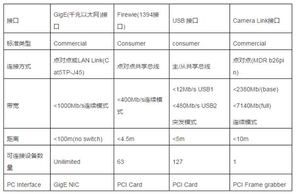 以下是工業(yè)相機(jī)幾種接口的比較: